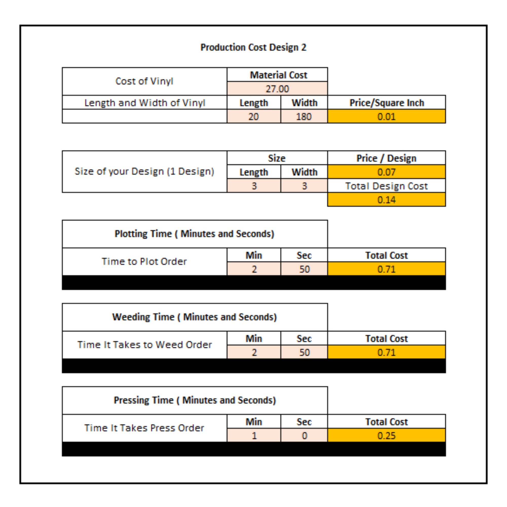 HTV 3 Color Design Product Cost Calculator (Universal Products)