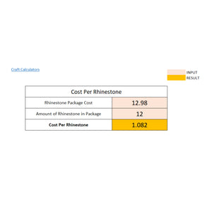 Are you curious about the cost of each rhinestone used in your project or product? We have a solution for you! Our calculator simplifies the process by dividing the total price by the number of rhinestones, giving you the precise cost per rhinestone. This tool is perfect for craft makers and business owners who need accurate pricing to ensure profitability and efficiency in their projects.