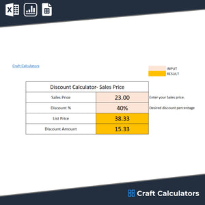 This sales price calculator is perfect for when you have a list price and want to create a sale. Simply input the list price and the percentage you want to discount, and the calculator will instantly provide the sale price. Ideal for businesses looking