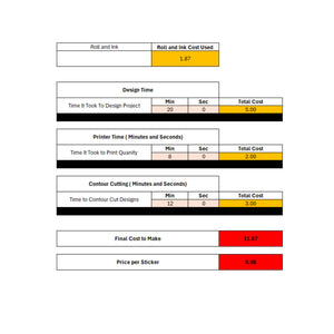Ensure you are calculating your Epson 540 sticker and decal production costs effectively with this simple and powerful tool, designed to help you understand both your total project expenses and individual unit costs.