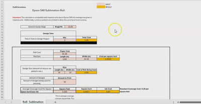 Ensure you are calculating your Epson 540 sublimation product costs effectively with this simple and powerful tool, designed to help you understand your true project expenses when using roll paper.