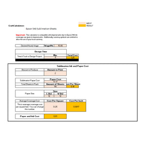 Ensure you are calculating your Epson 540 sublimation product costs effectively with this simple and powerful tool, designed to help you understand your true project expenses.