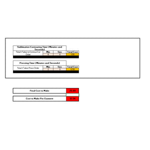 Complete Product Cost Analysis: Calculate product costs including ink and paper sheet usage along with contouring time and pressing on garment costs, giving you a complete picture of your project expenses.
