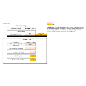 HTV 4 Color Design Product Cost Calculator (Universal Products)