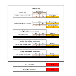 Onesie-Specific Pricing: Calculator designed specifically for onesie HTV projects, allowing you to factor in onesie-specific costs, sizing considerations, and delicate fabric handling time.