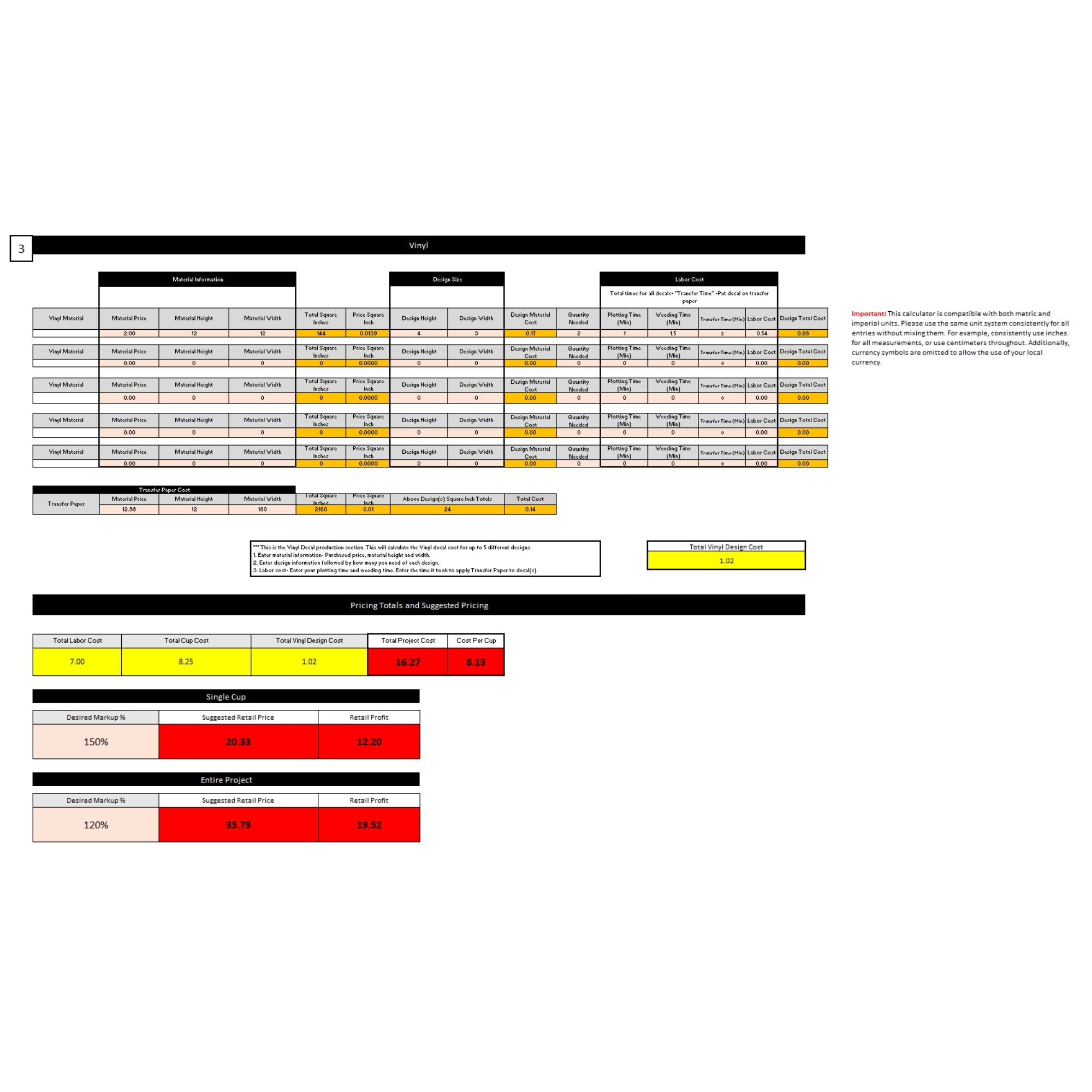 Custom Permanent Vinyl Tumbler Pricing Calculator: Calculate Cost to Make and Suggested Retail Pricing