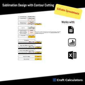 Sublimation Design Cost | Contour Cutting | Ink Cost Calculator Spreadsheet