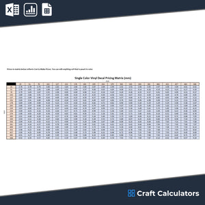 Vinyl Decal Pricing Matrix: Calculate Single-Color Vinyl Decal Costs in Millimeters (mm)