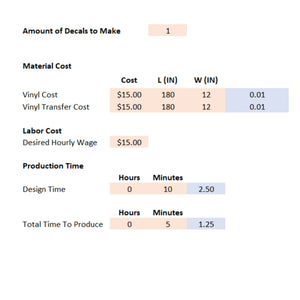 Vinyl Decal Pricing Matrix: Calculate Single-Color Vinyl Decal Costs in Inches